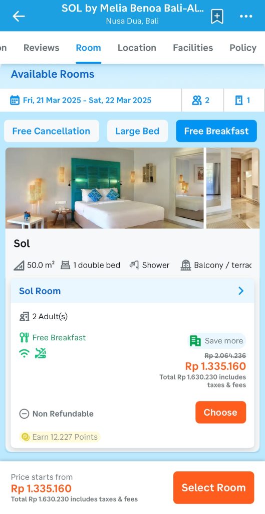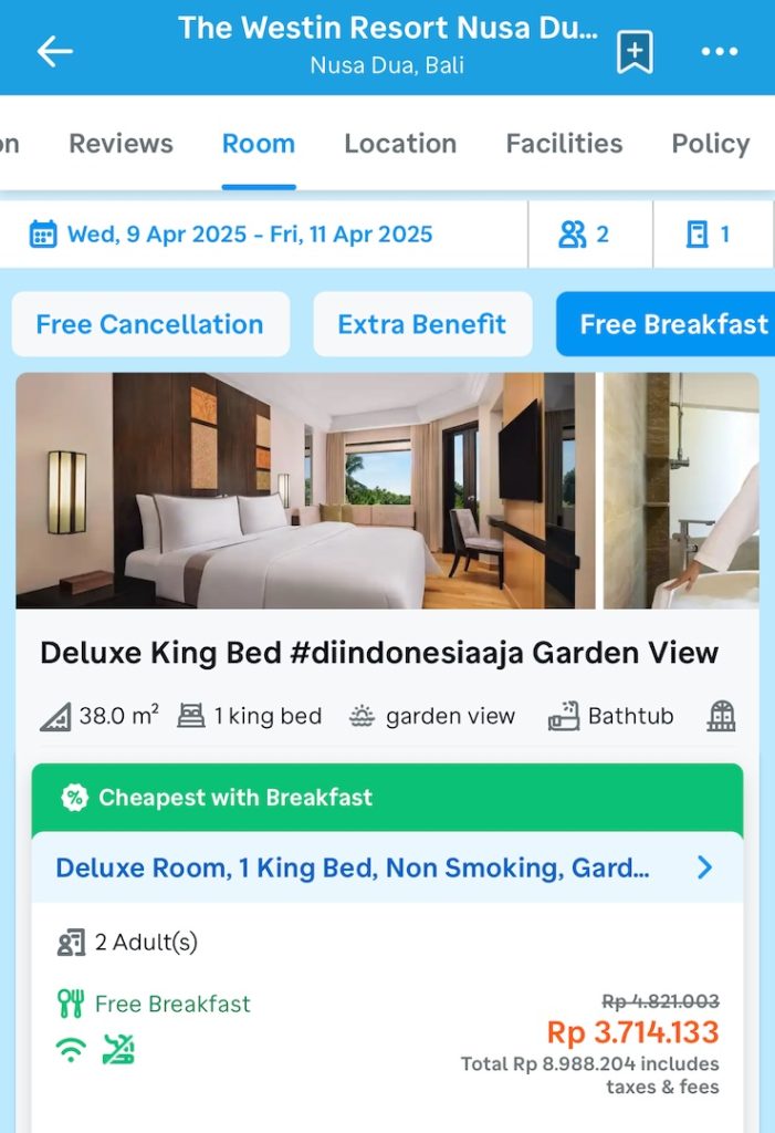 Tetapi saya harus bilang, apabila saya ganti tanggal yang berbeda, maka bisa jadi 2 malam di Westin Resort Nusa Dua hanya 4jt lebih, dan cash rebate/50.000 miles jadi lebih menarik.