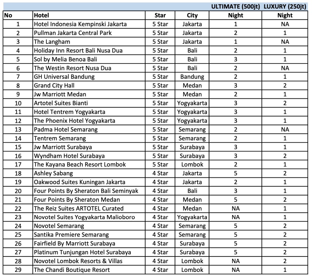 Di paket Luxury ini kita bisa mendapatkan 15.000 miles/1-2 malam menginap di hotel pilihan/cash rebate 2.5jt.