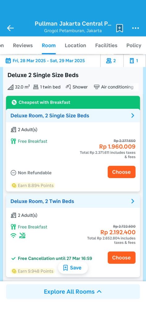 Harga 1 malam Rp. 1.63jt vs Cash Rebate 2.5jt, tentunya saya akan pilih cash rebate.